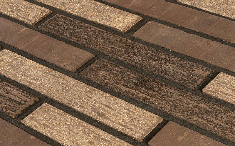 Лицевая поверхность имеет уникальный рельеф, который дополнительно визуально удлиняет кирпич. Также в производстве используется технология торкретирования — нанесение на поверхность декоративного покрытия.