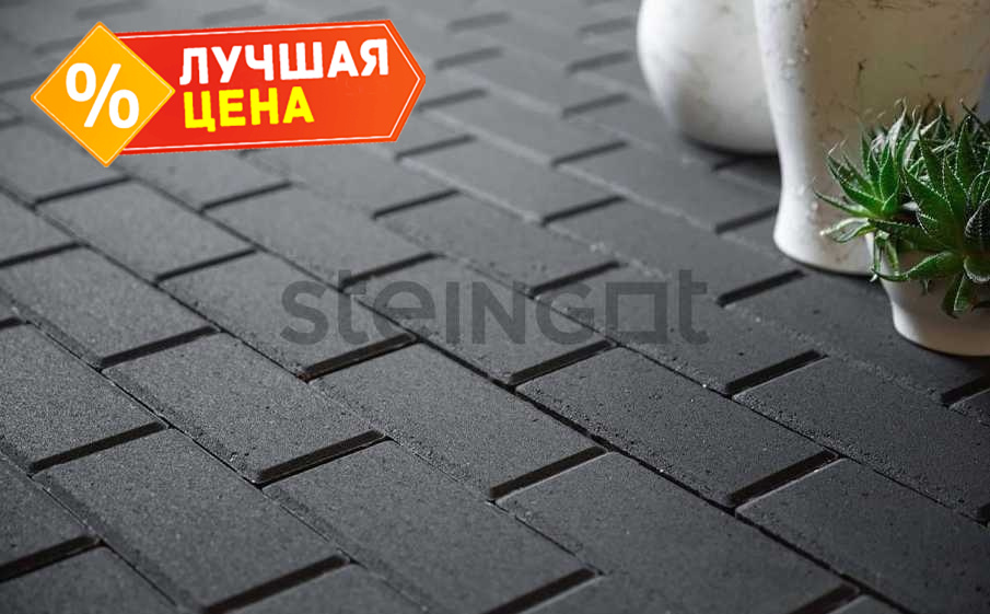 Плитка тротуарная Steingot Моно, Прямоугольник, фаска 5x5, черный, 200x100x60 мм